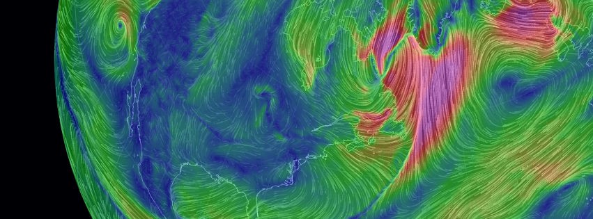 Cameron Beccario presents a visualization of global weather conditions forecast by supercomputers, updated every three hours. Weather Data is derived from NCEP / US National Weather Service / NOAA Global Forecast System. Poetry in motion at http://earth.nullschool.net.